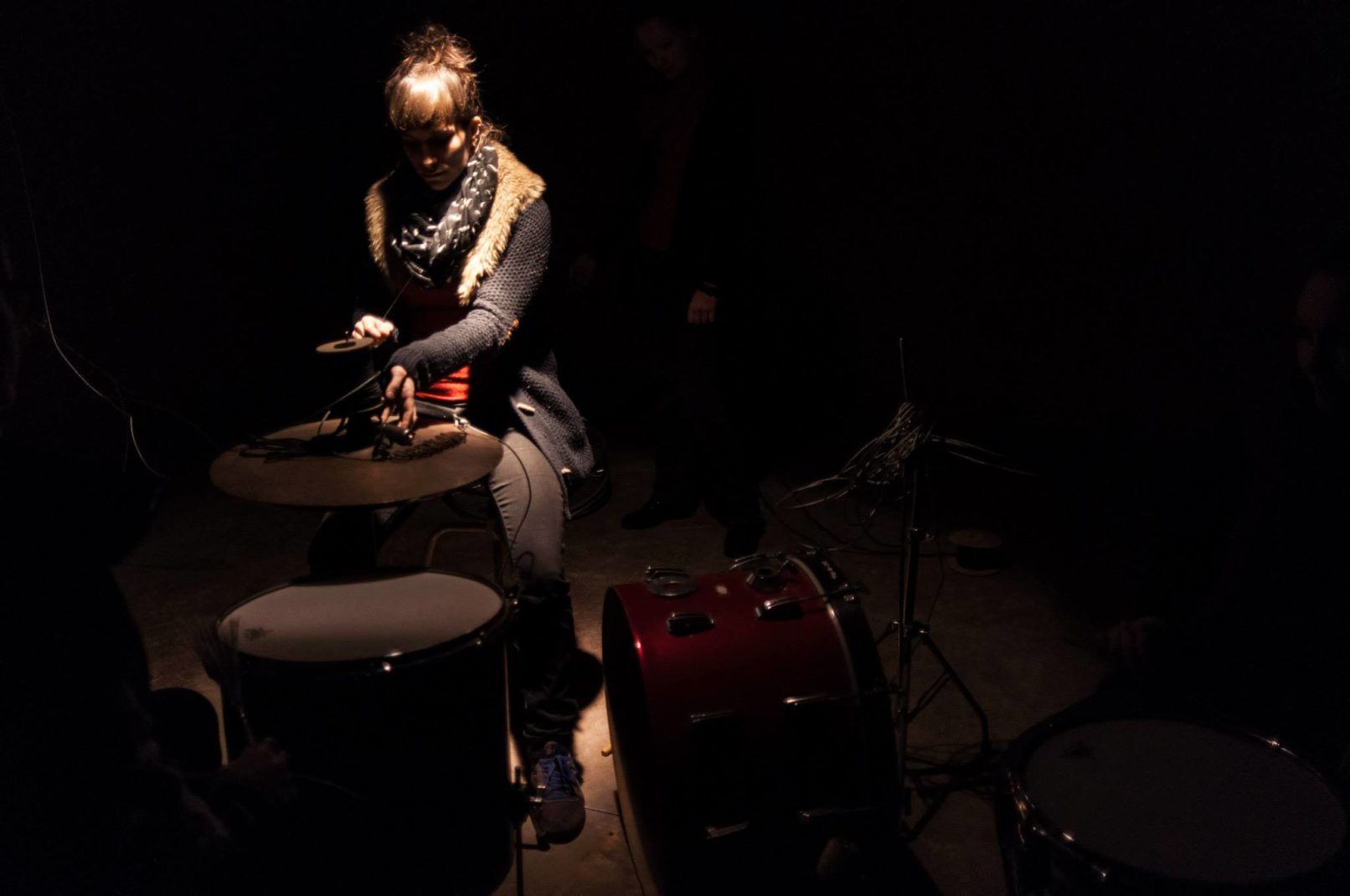 “The performance took as its topic the question (still rarely worked on in music) of constant adjusting of a human beeing to the needs of the labor market in the last decades. The gate to those worlds was the industrial elevator of Lido knitting factory. The audience started the travel through subsequent rooms and “isles” of work. Every stop was a short acoustic composition and a stage movement. The uninterrupted thread of melody was created by its subsequent notes, sung and tapped out on the bodies, declaimed or played on factory’s equipment, as well on a chatterbox of a heater’s ribs, as on roller-blinds, bobbins, boards and factory’s cabinets. The actors were passing the melody from hand to hand, like on a production conveyor belt. ”