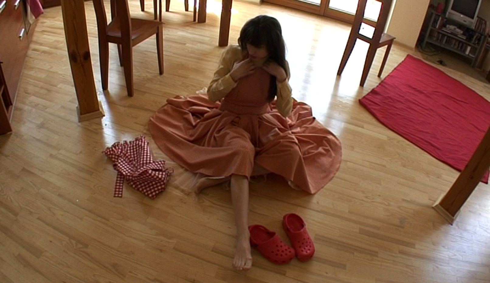 What are the limits of the role? At what point is the gap create? – these were the questions that Wollny asked herself while observing, through the eye of the camera, the part practice by Lulu. In this the experiment, which is an attempt to deconstruct the theatre, the roles have multiplied and merged one another. As a character from Wedekind’s drama Lulu takes on different parts – of a young Lolitae, of a polite wife and of a femme fatale. This chameleon is played by Marta Ojrzyńska. Looking at Lulu the viever can reflect on the social roles assigned to women. Only after going through all the layers and mediation, you can ask about the moment of abandoning the role, about the state of „being natural”, when looking at the face of true Lulu, of true Ojrzynska, of real women? The actress was placed in the position to speak on her own behalf, to expose the craft of acting, and, in some way, to challenge it.