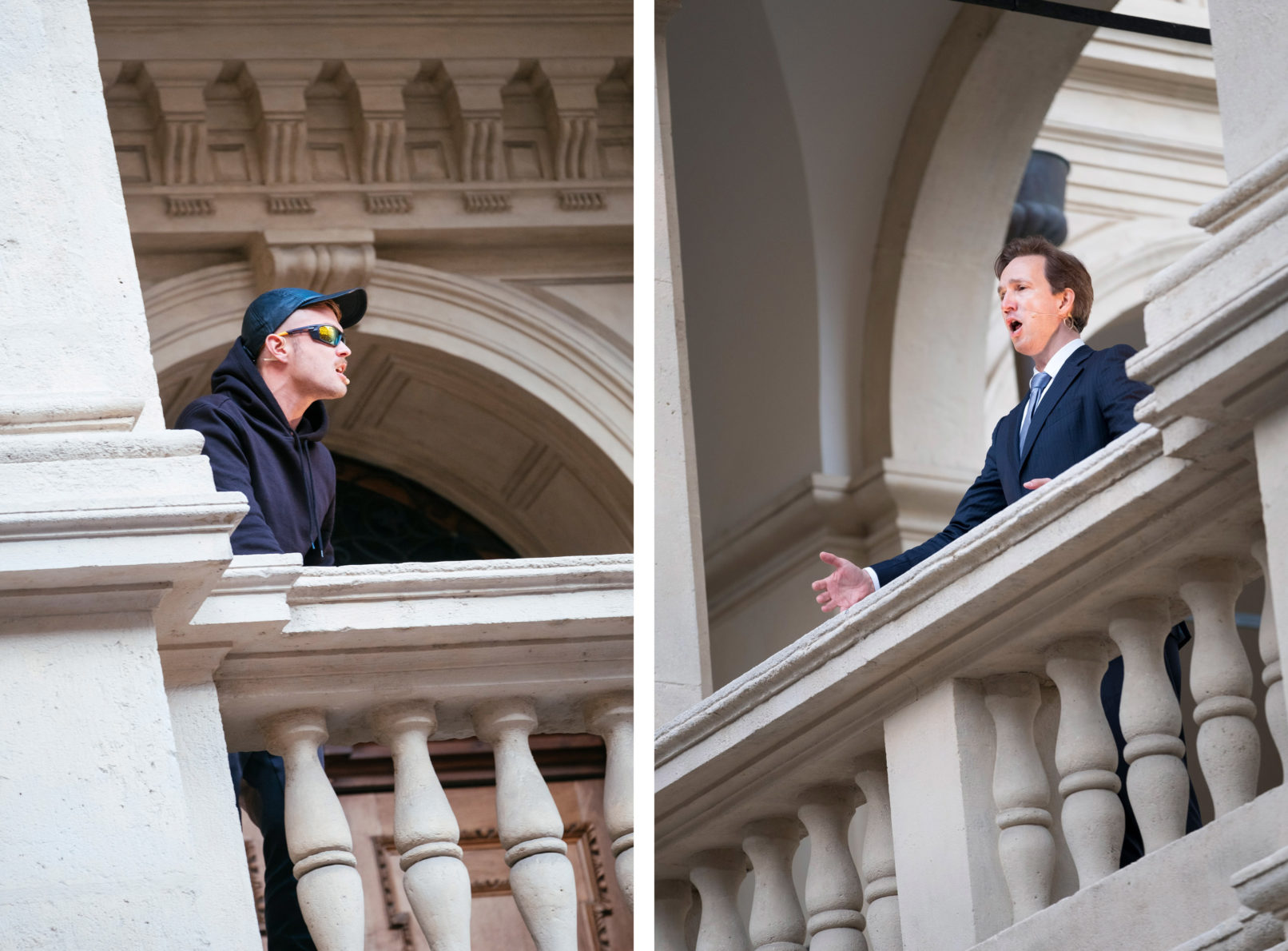 A central question for most humanism and activism today is how to come together beyond populism while not simply preaching to the choir. On September 19, Grand Hotel Abyss opened in the midst of this shattered commons with composer Zorka Wollny’s Voicers—Oratorio for Five and a Listening Crowd (2019) performing the vacuity of political speech. From balconies of the Renaissance palace Landhaushof Graz, five people sang drowned-out arguments for unity across the political spectrum.