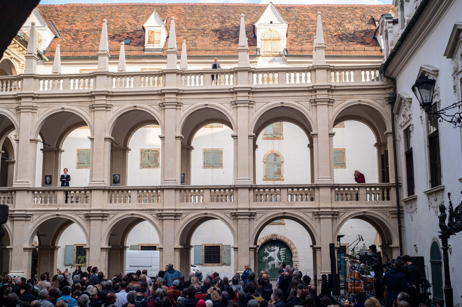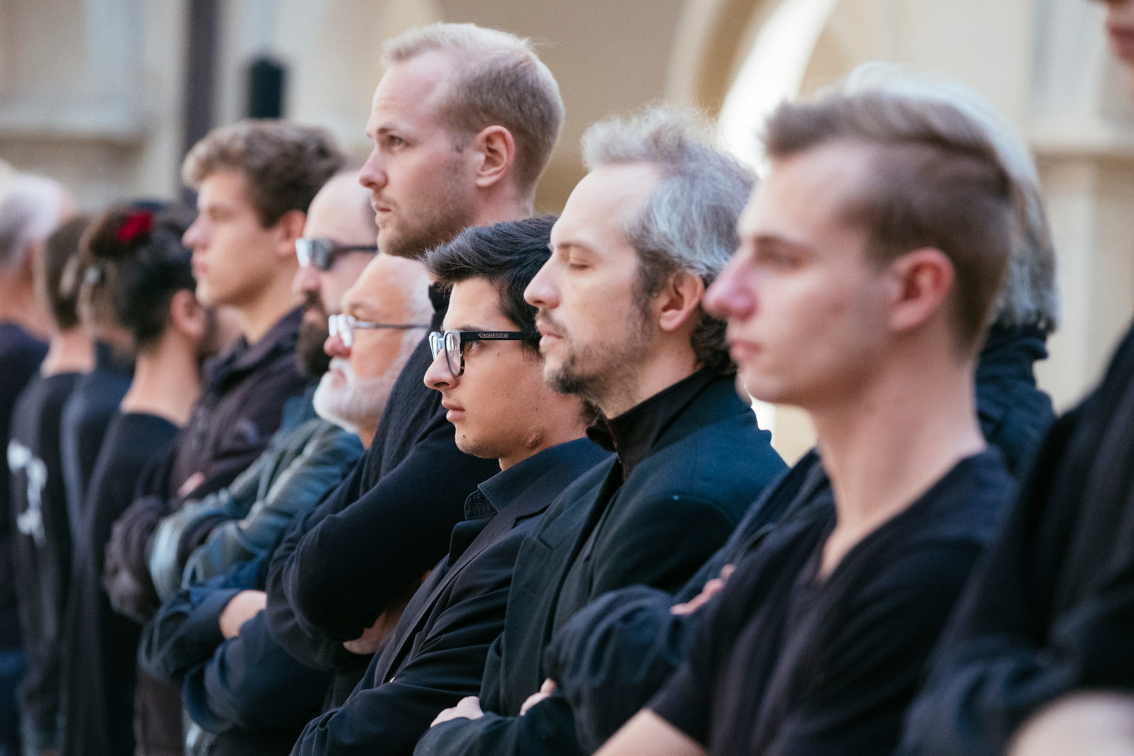 Renesansowa perełka architektury stała się tłem dla performansu Zorki Wollny Głosiciele – Oratorium na pięciu mówców i słuchający tłum. Co prawda w większości był on odegrany po niemiecku, ale nawet bez zaawansowanej znajomości tego języka można było łatwo wczuć się w atmosferę politycznego wiecu – pojawiający się na krużgankach mówcy kolejno starali się „oczarować” okrągłymi frazami wyjętymi z prawdziwych przemów i artykułów prasowych, aż w końcu ich nawoływania i obietnice złączyły się we wspólny, bełkotliwy jazgot. W finale ten populistyczny koncert został dopełniony złowieszczym pomrukiem białych mężczyzn, wszystkich ubranych na czarno, którzy niespodziewanie wyłonili się z tłumu i ustawili na dziedzińcu w bojówkarski szereg.